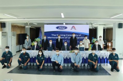 4 ปี ที่ผ่านมาพิธีลงนามรหว่างวิทยาลัยเทคนิคสัตหีบและบริษัทฟอร์ดแห่งประเทศไทย ณ อาคารปฏิบัติการ Vienna paradise
